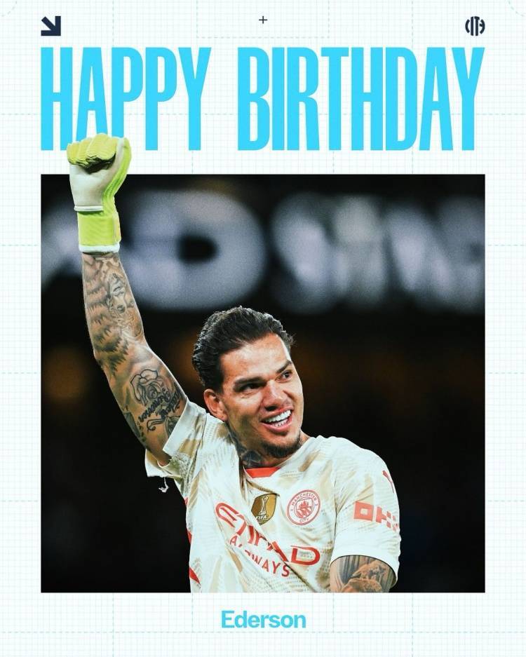 曼城官方社媒晒出埃德森的生日海报,配文:“祝你生日快乐,埃德森!”